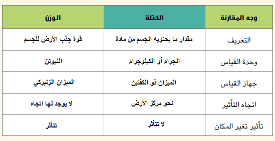 أ- تقاس الكتلة باستخدام الميزان ذو الكفتين بينما يقاس الوزن باستخدام الميزان الزنبركي.