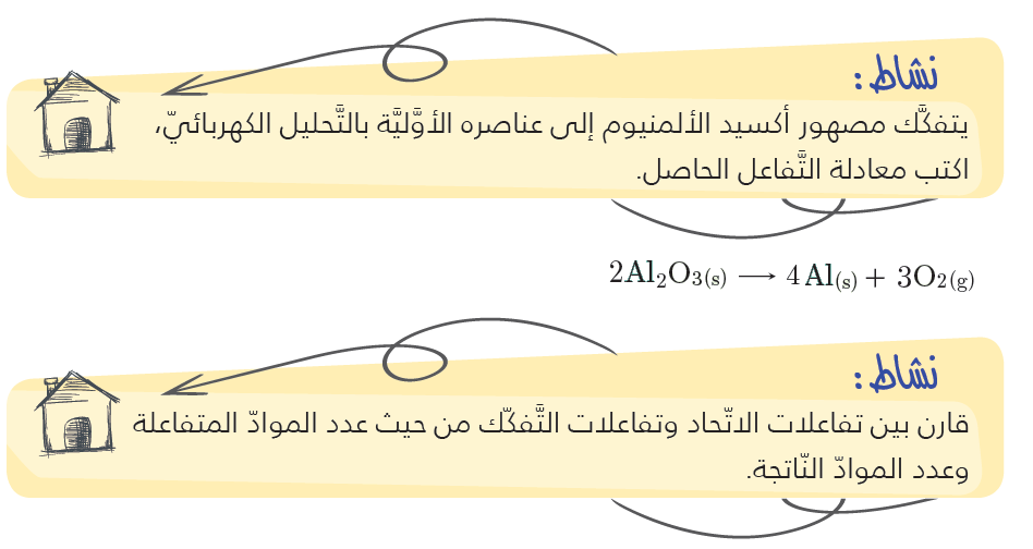 تفاعلات التفكك: هي التغيّرات الكيميائية التي تتفكك فيها مادّة واحدة إلى عدّة موادّ.