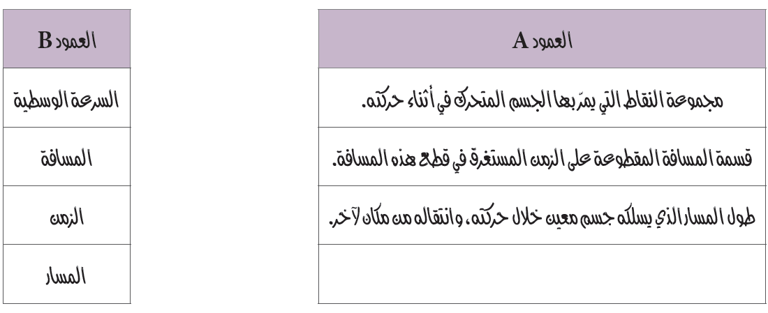 صل بخط بين العبارة في العمود A والمصطلح العلمي المناسب في العمود B :
