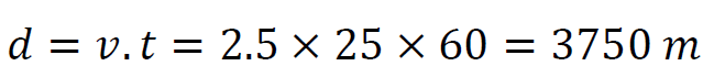 2- المسافة التي يقطعها خلال زمن قدره 25 min :