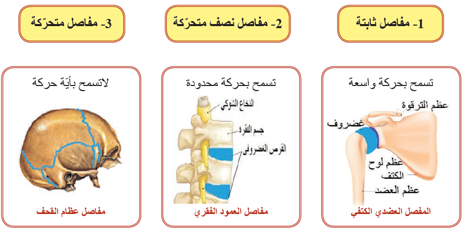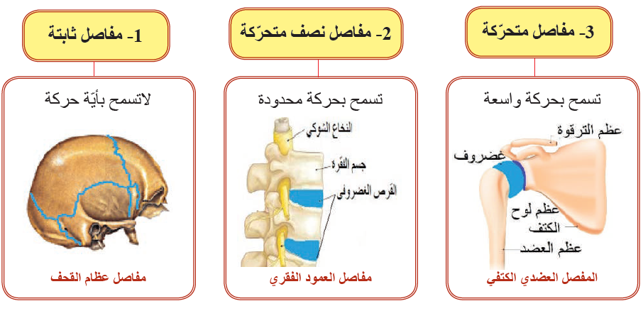 ألاحظ الأشكال الآتية التي تمثّل أنواع المفاصل لدى الإنسان، وأصل بخط المفصل مع نوعه: