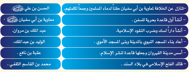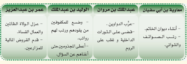 أسجل داخل الدائرة أهم عمل قام به أبرز خلفاء الدولة الأموية من وجهة نظري: