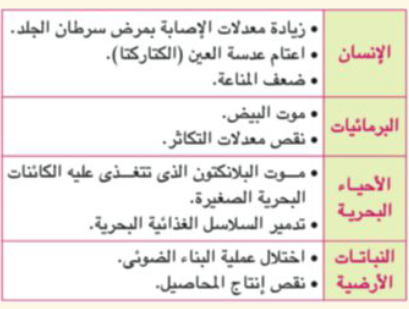 تمنع طبقة الأوزن نفاذ الأشعة فوق البنفسجية البعيدة، ومعظم الأشعة المتوسطة لما لها من أضرار بالغة.