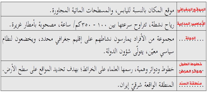 أختار المفهوم المناسب، وأضعهُ في المكان المخصص له:
