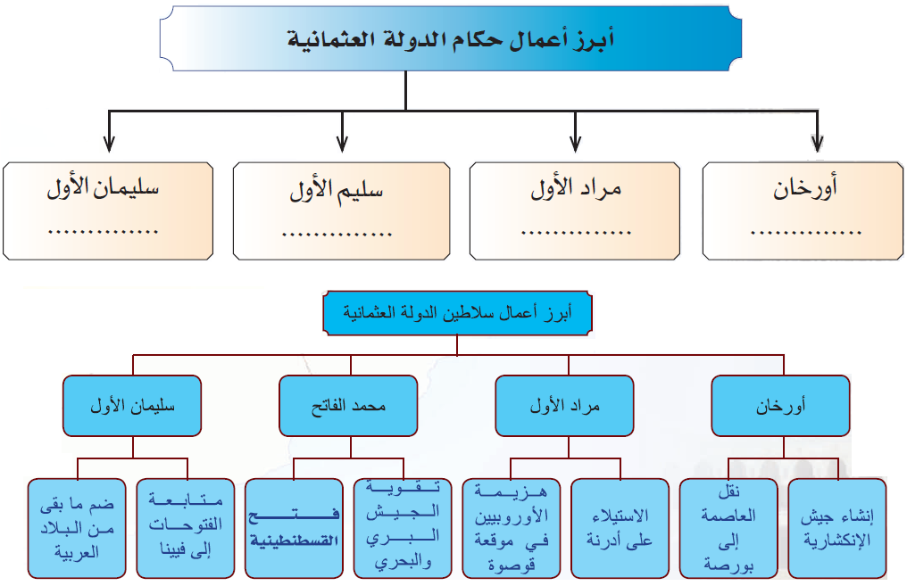 أكتب باختصار أبرز أعمال – من وجهة نظري – لخلفاء الدولة العثمانية في الشكل التالي: