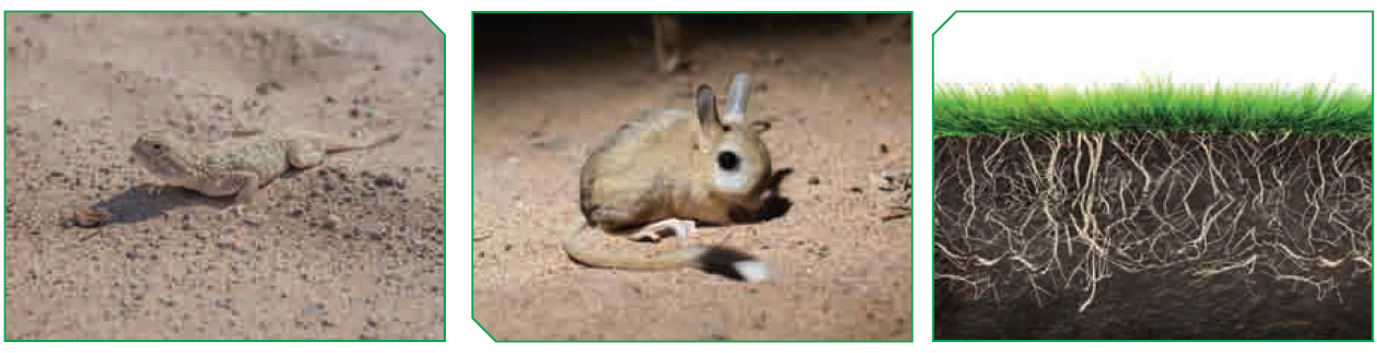 - لون الحيوانات في الصحراء يشبه لون الرمال ليساعدها على التخفي من الأعداء.