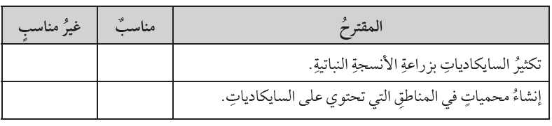 2- أي المقترحين الآتيين مناسبٌ للتقليل من تعرّض السايكاديات للانقراض؟