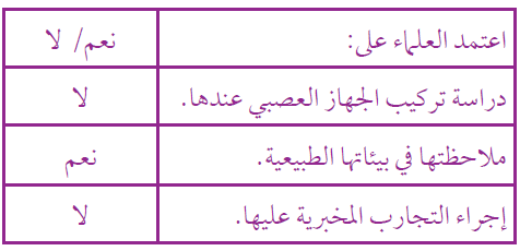 أضع في ما يأتي دائرةً حول كلمة (نعم) أو كلمة (لا) إزاء العباراتِ التي تمثل ما اعتمده العلماء لتقرير سلوك الحيوانات:
