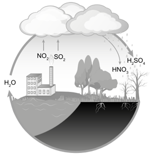 أستعين بالشكل الآتي، وأوضح كيف تحدث ظاهرة الهطل الحمضي.