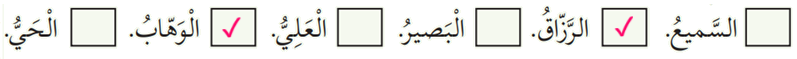 أميز أسماء الله تعالى الحسنى التي تتناسب في معناها مع اسم الله تعالى المعطي بوضع إشارة (✓) بجانبها:
