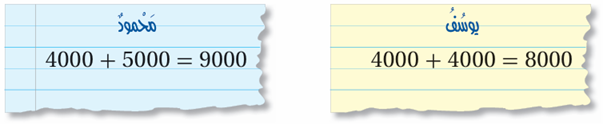(12) أكتشف الخطأ: قدر محمود ويوسف مجموع العددين 4586 و 3658، فكانت إجابتاهما كما يأتي: