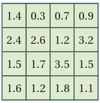 (13) مسألة مفتوحة: أجد 3 أزواج من الأعداد العشرية في الشكل المجاور بحيث يكون مجموع كل زوج عدداً كلياً، ويكون العددان العشريان متجاورين عمودياً أو أفقياً أو قطرياً.