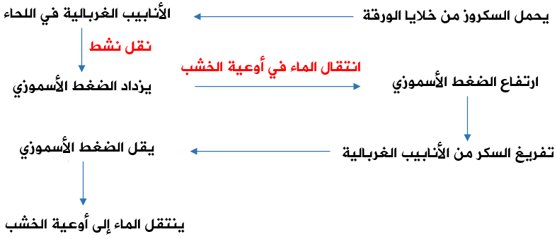لخص عملية نقل الغذاء الجاهز في النباتات الزهرية، مبيناً مكان حدوث عملية تحميل السكروز وعملية تفريغه، وذلك برسم مخطط سهمي يوضح ذلك.