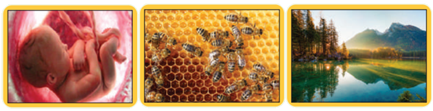 - الصورة (2): تظهر عظمة الله تعالى في خلقه للنحل بأعداد هائلة وإعطائه القدرة على بناء بيوته بطريقة هندسية، وصنعه للعسل الذي فيه شفاء وطعام للناس.