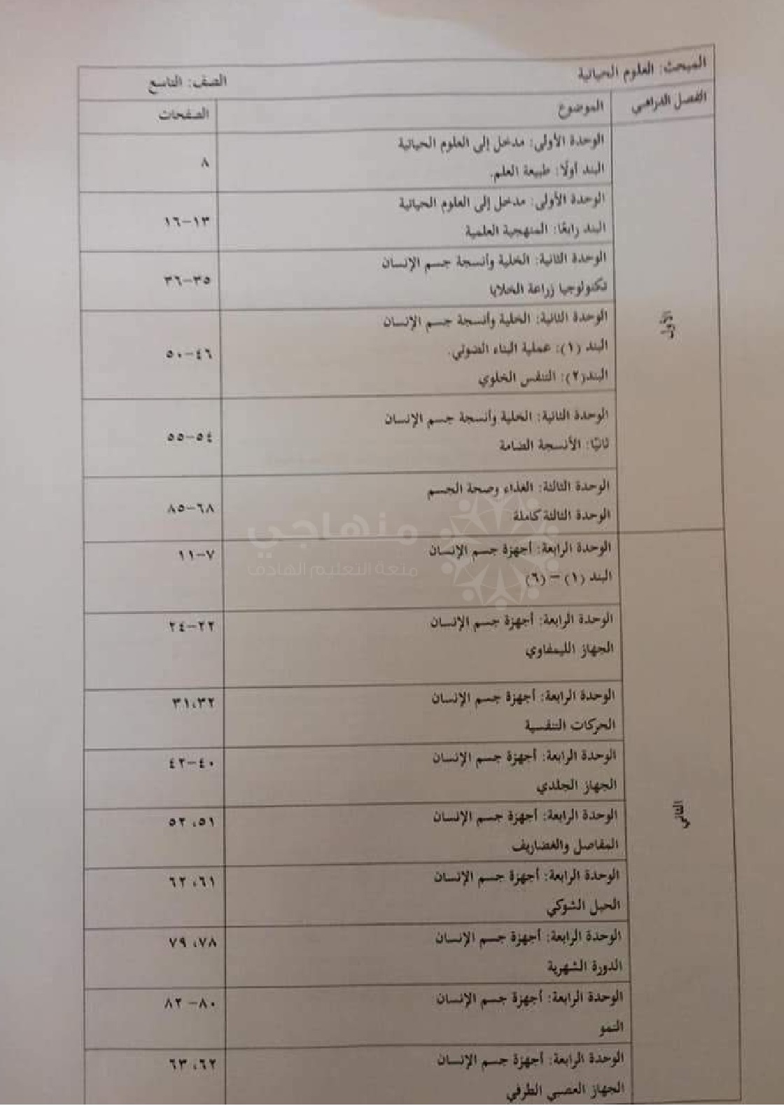 منهاج العلوم الحياتية القديم