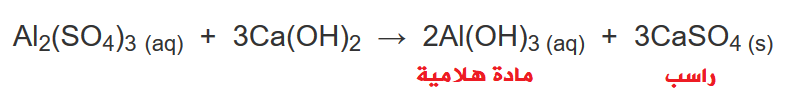 وفي هذه الخطوة تضاف مواد كيميائية مثل كبريتات الألمنيوم Al2(SO4)3 وهيدروكسيد الكالسيوم Ca(OH)2 إلى الماء، فينتج من تفاعلهما مادة هلامية (هيدروكسيد الألمنيوم) تلتصق بها المواد العالقة، وتترسب في أسفل وعاء التخثير.