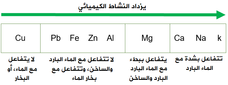ترتيب الفلزات حسب تفاعلها مع الماء