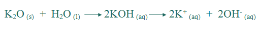اكتب معادلة كيميائية تمثل تفاعل أكسيد البوتاسيوم مع الماء.