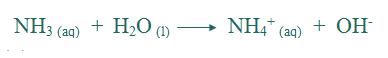 تعتبر الأمونيا NH3 قاعدة بالرغم من عدم احتوائها على هيدروكسيد، ولكن عند تفاعلها مع الماء تكوّن أيون الهيدروكسيد كما في المعادلة التالية: