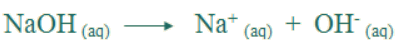 يتأين هيدروكسيد الصوديوم في الماء وفق المعادلة التالية: