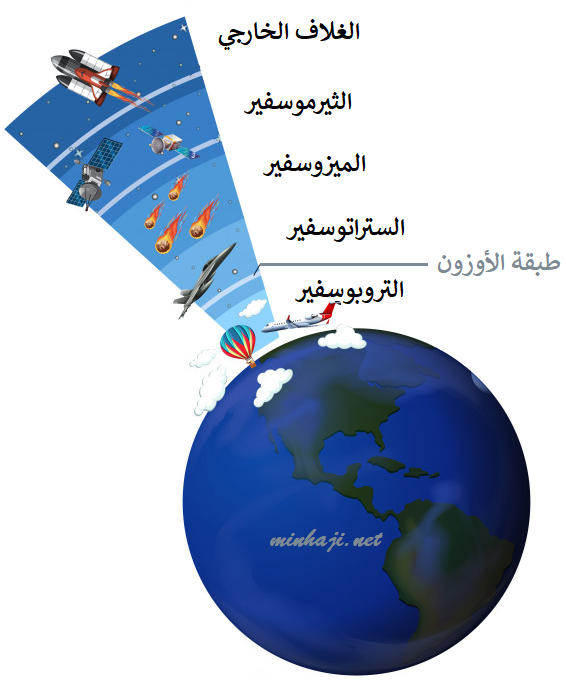 يتكون الغلاف الجوي من أربعة طبقات رئيسة، هي: