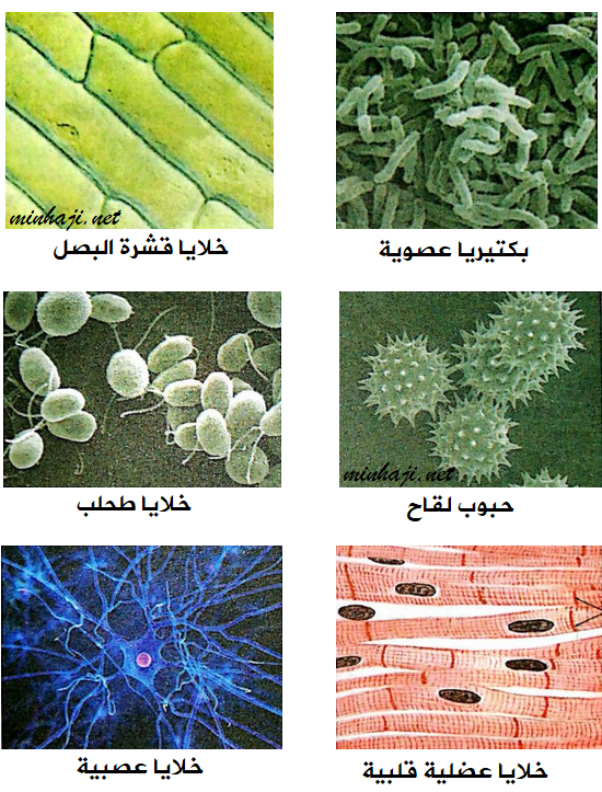 الصور التالية تمثل عدد من خلايا البكتيريا والخلايا النباتية والحيوانية: