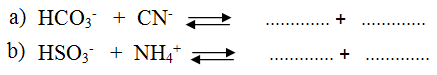 اكتب معادلات تبيّن سلوك كل من: HCO3- و HS- كحمض في تفاعلهما مع N2H4 ، وكقاعدة في تفاعلهما مع HNO2 .