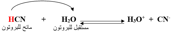 ادرس التفاعلات التالية، وعيّن الحمض والقاعدة وفق مفهوم برونستد - لوري:
