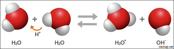 ثبت عملياً أن الماء النقي موصل ضعيف جداً للتيار الكهربائي، وهذا يدل على وجود أيونات موجبة وأخرى سالبة مسؤولة عن ذلك. إن مصدر هذه الأيونات هو التأين الذاتي للماء حيث يمكن لجزيء ماء أن يمنح بروتوناً لجزيء ماء آخر، فيسلك بذلك أحدهما سلوك الحمض والآخر سلوك القاعدة.