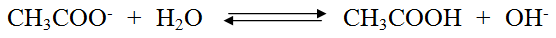 لا تتميه أيونات Na+ لأن مصدرها القاعدة القوية NaOH ، أما أيون الإيثانوات CH3COO- فيتميه لأنه يعطي حمض الإيثانويك الضعيف، حسب المعادلة: