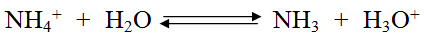 لا تتميه أيونات Cl- لأنها ناتجة من الحمض القوي (HCl)، أما الأيون NH4+ فيتميه لأنه ناتجٌ من القاعدة الضعيفة (NH3) حسب المعادلة التالية: