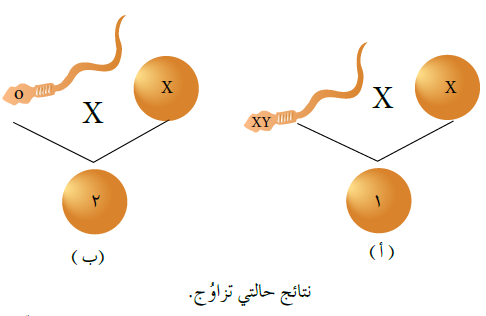 أ- اكتب اسم الاختلال الوراثي والطراز الكروموسومي الجنسي الذي يُمثِّله كلٌّ من الرقمين (1) و (2).