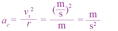 مستخدماً العلاقة الرياضية للتسارع المركزي، ومعتمداً وحدتي قياس السرعة ونصف القطر، اشتق وحدة التسارع المركزي.