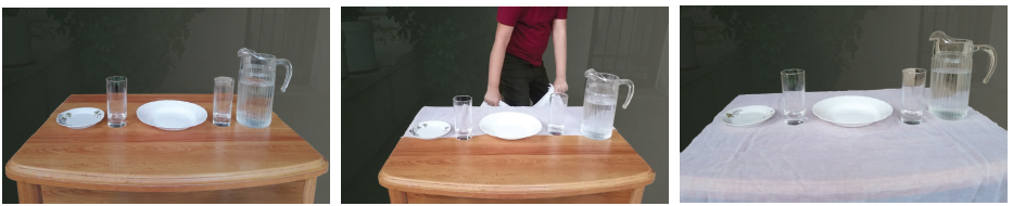 في الشكل (6) تظل أطباق السفرة ثابتة على سطح الطاولة عند سحب المفرش أفقياً من أسفلها بسرعة كبيرة. أفسّر ذلك.