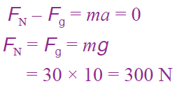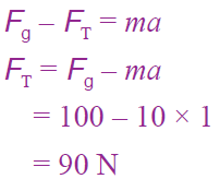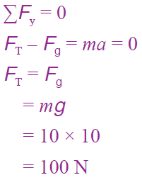 قراءة الميزان تساوي قوة الشد في الخيط المتصل بالثقل، وبما أن الثقل والميزان تحركا إلى أعلى بسرعة متجهة ثابتة، لذا تكون القوة المحصلة المؤثرة فيهما صفراً، وبتطبيق القانون الثاني لنيوتن على الدلو في اتجاه المحور y ؛ لحساب مقدار قوة الشدّ.
