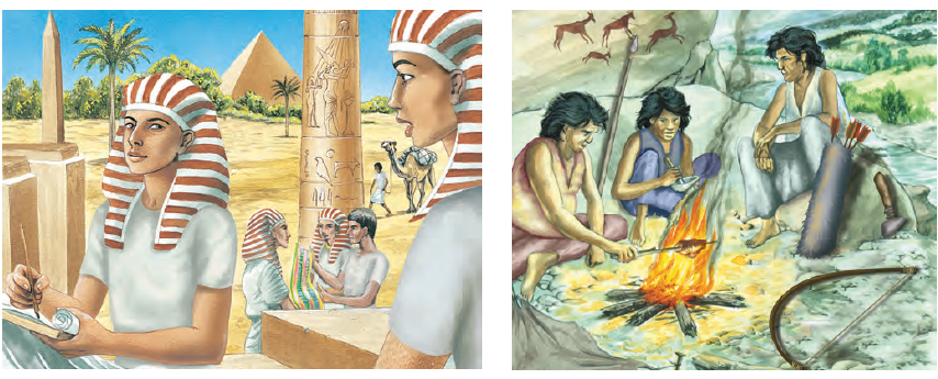 استنتج ماذا نتعرف من التاريخ المدون باللغة الهيروغليفية في الرسومات الصخرية.