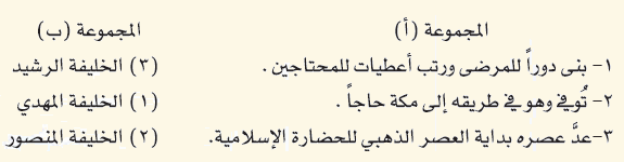 أصل بين المعلومات في المجموعة (أ) بما يناسبها من المجموعة (ب):