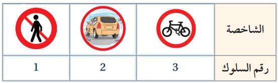 (2) أضع رقم السلوك من الجدول السابق تحت اللافتة المناسبة له فيما يأتي: