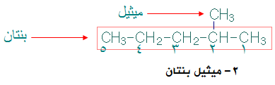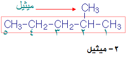 - سم التفرع مسبوقاً برقم ذرة الكربون المرتبطة به.