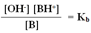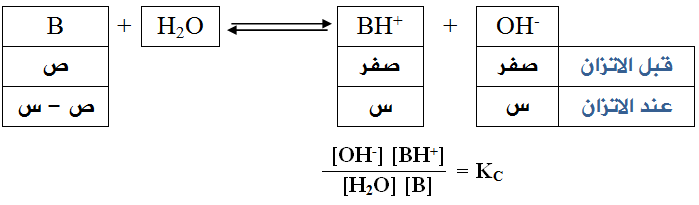 وبما أن [BH+] = [OH-] = س عند الاتزان فإن العلاقة السابقة تصبح: