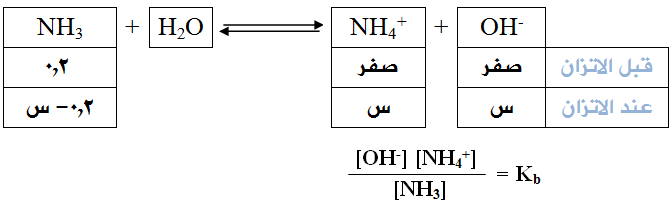 وبما أن [NH4+] = [OH-] = س عند الاتزان فإن العلاقة السابقة تصبح: