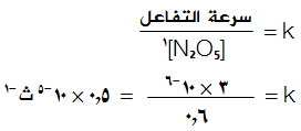 - احسب سرعة تفكك N2O5 عندما يكون تركيزه 1,5 × 10-3 مول/لتر.