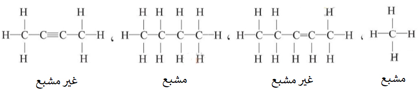 صنّف المركبات الهيدروكربونية الآتية إلى مركباتٍ مشبعةٍ وأخرى غير مشبعةٍ: