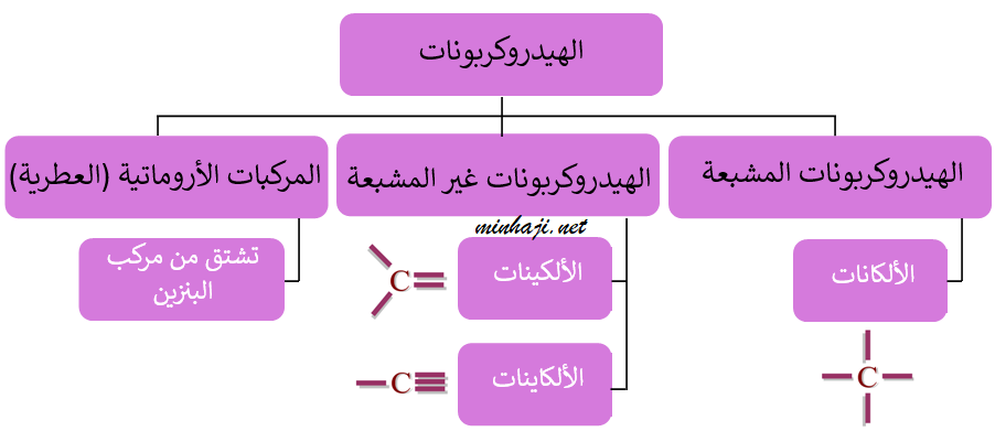 الهيدروكربونات: مركبات عضوية، تتكون من ذرات الكربون والهيدروجين فقط.