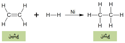 تحويل الإيثين (ألكين) إلى إيثان (ألكان) بإضافة الهيدروجين.