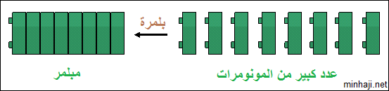 المونومر: جزيء صغير نسبياً ترتبط أعداد كبيرة منه مع بعضها مكونة جزيئاً ذو كتلة جزيئية عالية يسمى المبلمر.