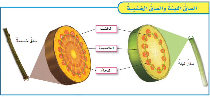 الساق اللينة ليست قوية مثل الساق الخشبية. الأشجار تحتاج إلى ساق قوية لحمل الفروع والأوراق والثمار.
