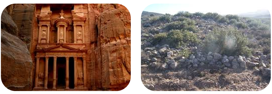 أشاهدُ في الشكل (ب) بناءً لحضارة الأنباط (البتراء).