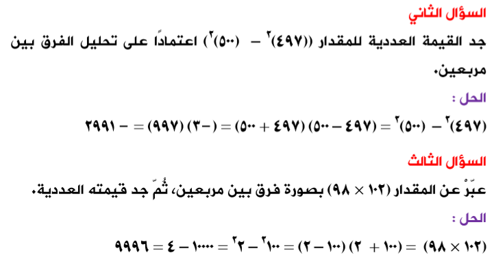 لمزيد من الفائدة وفهم إجابات درس الفرق بين مربعين وتحليله شاهد الفيديو التالي