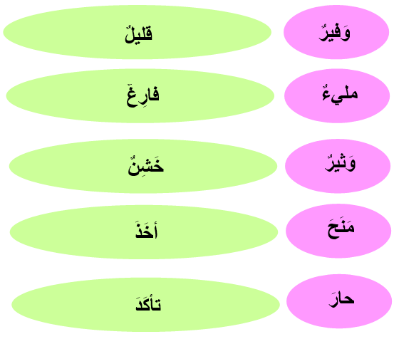 - اخْتَرْ مِنَ الْعَمودِ الثّاني ما يُناسِبُ مَعْنى الْكَلِمَةِ في الْعَمودِ الْأَوَّلِ، ثُمَّ اكْتُبْهُ بَيْنَ الْقَوْسَيْنِ: